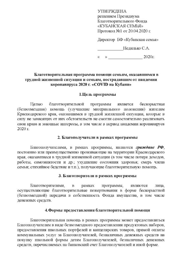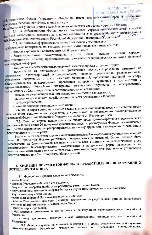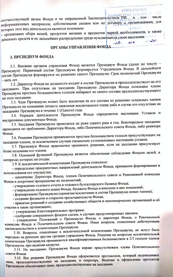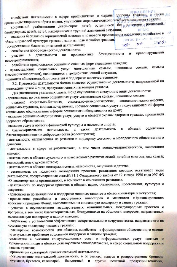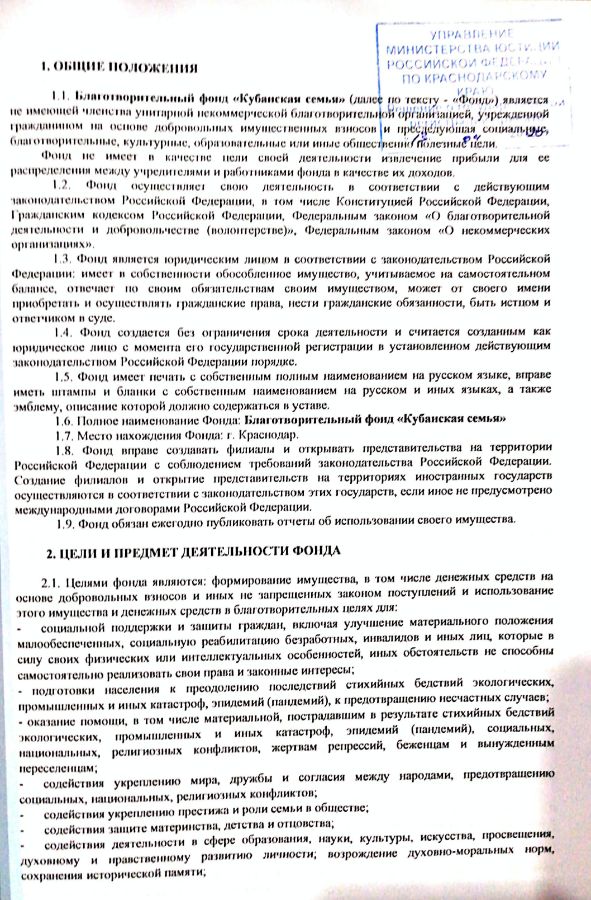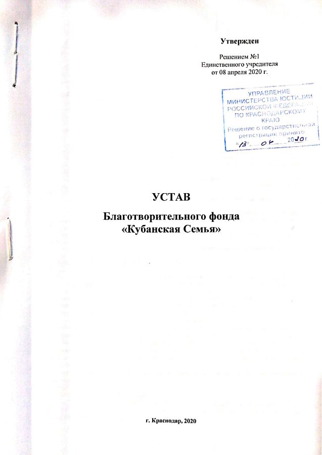 Учредительные документы благотворительного фонда «Кубанская семья»